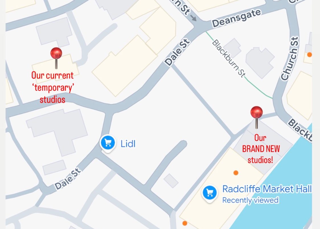We are currently in temporary studios and we will miss them! BUT,we are looking forward to an exciting move into our brand-new studios. We are due to move into our new home in Summer 2026!
